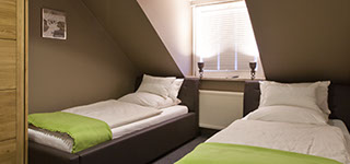 8 Pensionszimmer mit insgesamt 16 Betten, inklusive Bad und Satelliten-TV stehen den Gästen zur Verfügung. Die neu renovierten Zimmer sind geräumig und modern ausgestattet, alle Zimmer verfügen über einen Kühlschrank.